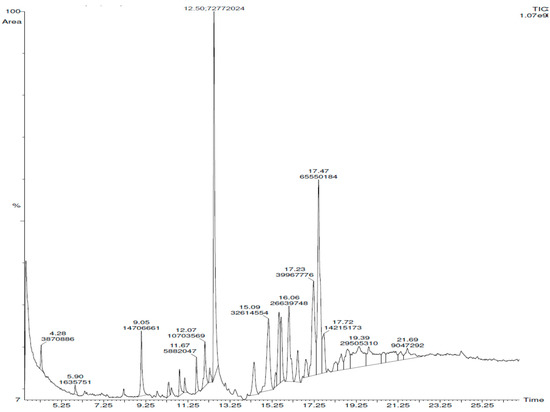 3.2. Identification of S. Lappa Root Components by GC–MS Analysis