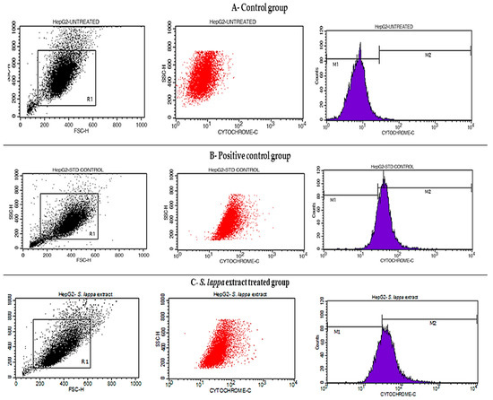 Chicago/Turabian StyleAlotaibi, Amal A., Asmatanzeem Bepari, Rasha Assad Assiri, Shaik Kalimulla Niazi, Sreenivasa Nayaka, Muthuraj Rudrappa, Shashiraj Kareyellapa Nagaraja, and Meghashyama Prabhakara Bhat. 2021. "Saussurea lappa Exhibits Anti-Oncogenic Effect in Hepatocellular Carcinoma, HepG2 Cancer Cell Line by Bcl-2 Mediated Apoptotic Pathway and Mitochondrial Cytochrome C Release" Current Issues in Molecular Biology 43, no. 2: 1114-1132. https://doi.org/10.3390/cimb43020079