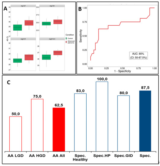 3.5. Early Cancer Diagnostics of Advanced Adenomas (UDX, 180 Marker Times 110 Samples)
