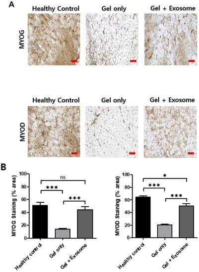 - Choi, J.S.; Yoon, H.I.; Lee, K.S.; Choi, Y.C.; Yang, S.H.; Kim, I.-S.; Cho, Y.W. Exosomes from differentiating human skeletal muscle cells trigger myogenesis of stem cells and provide biochemical cues for skeletal muscle regeneration. J. Control. Release 2016, 222, 107–115. [Google Scholar] [CrossRef] [PubMed]
