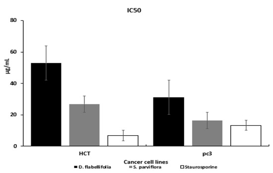 Table 3. Inhibition concentration IC50 of D. flabellifolia and S. parviflora against HCT-116 and PC3 cell lines.