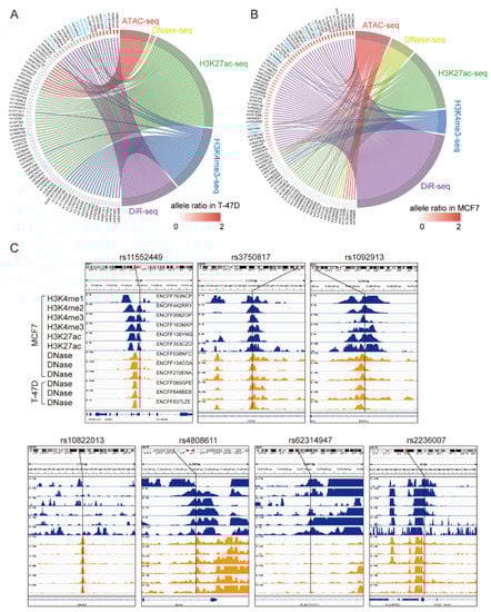 3.1. DiR-seq Identified Breast Cancer Risk-Associated Functional Variants