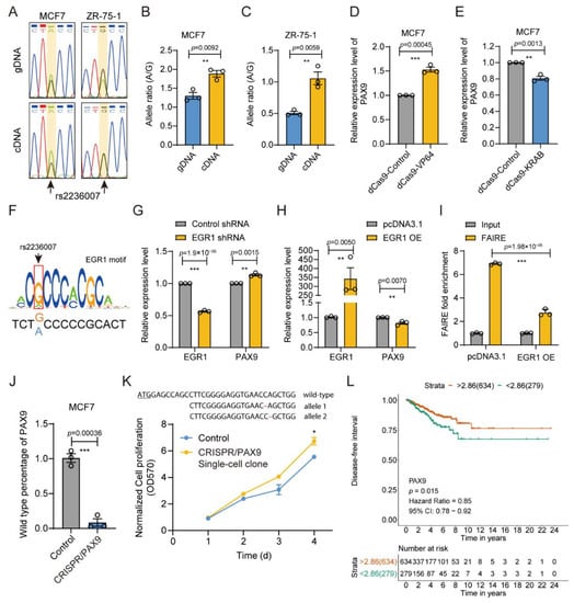 3.7. rs2236007 Affects PAX9 Expression by Altering EGR1 Binding