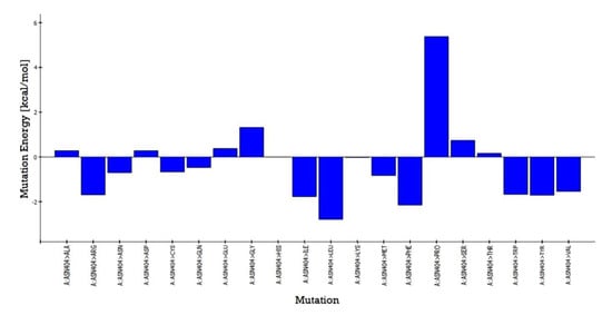Figure 7. Asn404 mutation energy graph showing the lowest mutation energy when mutated to Leu to increase the stability of the model.