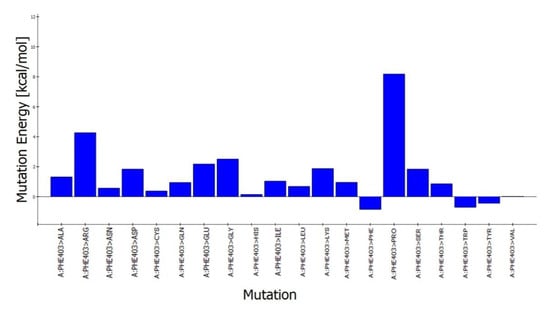 Figure 8. Phe403 mutation energy graph showing the lowest mutation energy when mutated to Phe to increase the stability of the model.
