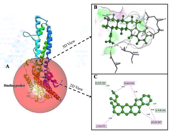2.3. Identification of Binding Pocket and Protein-Molecular Docking Studies