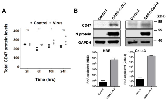 3.1. SARS-CoV-2 Infection Results in Enhanced CD47 Expression