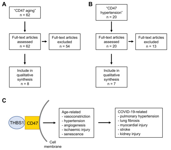 - Meijles, D.N.; Sahoo, S.; Al Ghouleh, I.; Amaral, J.H.; Bienes-Martinez, R.; Knupp, H.E.; Attaran, S.; Sembrat, J.C.; Nouraie, S.M.; Rojas, M.M.; et al. The matricellular protein TSP1 promotes human and mouse endothelial cell senescence through CD47 and Nox1. Sci. Signal. 2017, 10, eaaj1784. [Google Scholar] [CrossRef] [PubMed]