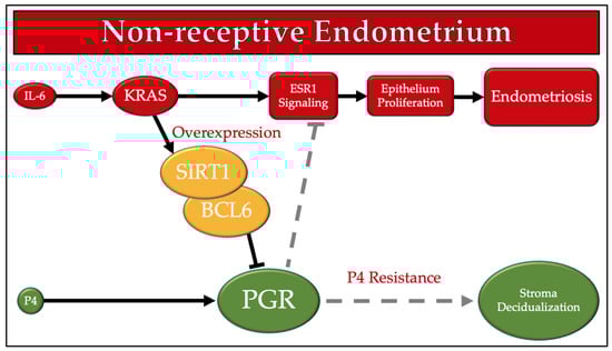 - Yoo, J.-Y.; Kim, T.H.; Fazleabas, A.T.; Palomino, W.A.; Ahn, S.H.; Tayade, C.; Schammel, D.P.; Young, S.L.; Jeong, J.-W.; Lessey, B.A. KRAS Activation and over-expression of SIRT1/BCL6 Contributes to the Pathogenesis of Endometriosis and Progesterone Resistance. Sci. Rep. 2017, 7, 6765. [Google Scholar] [CrossRef]