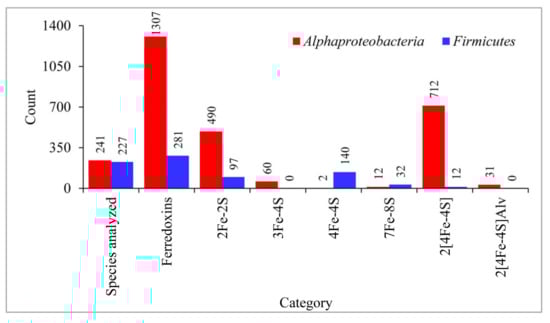 The following are available online at https://www.mdpi.com/article/10.3390/cimb43030098/s1, Table S1: Comparative analysis of ferredoxins in the bacterial groups Alphaproteobacteria and Firmicutes. Table S2: Ferredoxin protein sequences identified in 241 alphaproteobacterial species and 227 Firmicutes species. Ferredoxins were sorted as per their Fe-S cluster type and subtypes. Name of the ferredoxins were followed as mentioned in methodology. The name of the ferredoxins includes their nomenclature name followed by protein ID from KEGG database and species name, Table S3: Ferredoxin protein sequences identified by data mining of published articles and Protein Data Bank (PDB). Ferredoxins were sorted as per their Fe-S cluster type and subtypes. The name of the ferredoxins includes their nomenclature name as described in the methodology followed by protein ID (either GenBank accession number or PDB ID) database and species name. Cysteine amino acids that bind to the Fe-atom of Fe-S cluster is highlighted in the sequences. In case of two Fe-S clusters, cysteine amino acids highlighted with different colors representing their binding to different Fe-S clusters.