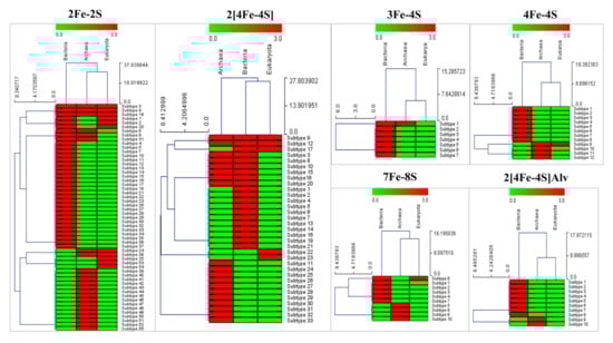 Ferredoxin subtype profile heat maps were generated following the procedure described recently by our laboratory [43,62]. The heat map was generated using the ferredoxin subtype data to show the presence or absence of ferredoxin subtypes in three domains of life, Archaea, Bacteria, and Eukarya. The data were represented as (−3) for subtype absence (green) and (3) for subtype presence (red). A tab-delimited file was imported into Mev (Multi-experiment viewer) [66]. Hierarchical clustering using a Euclidean distance metric was used to cluster the data. Ferredoxin subtypes formed the vertical axis and three domains of life formed the horizontal axis.