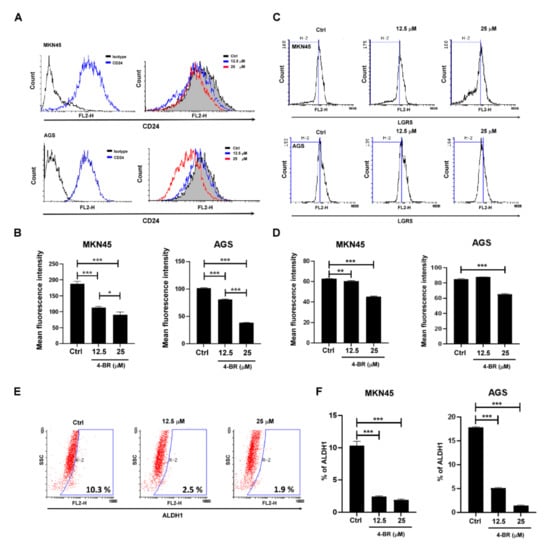 3.1. 4-BR Reduced Gastric Cancer Viability and Cancer Stemness Capacity