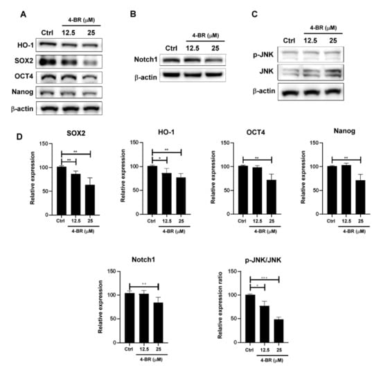 3.2. 4-BR Downregulated Stemness-Related Protein Expressions in Human Gastric Cancer Cells