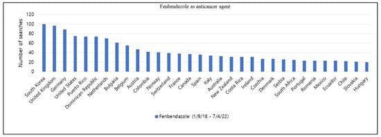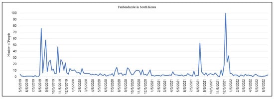 Another SNS group directly connected to Joe Tippens had pet owners who self-administer FZ using autoprescriptions to treat canine/feline cancer without informing veterinarians []. Patients are selling these drugs to each other, and specialized drug sellers are dealing directly with patients, which is strictly prohibited by Korean healthcare laws and regulations. The members are showing eagerness to use FZ or other benzimidazole antiparasitic drugs, including ABZ, MBZ, and FLU, and drugs from different groups such as niclosamide [], pyrvinium [], and ivermectin [] (which is effective against the COVID-19 virus []). An increase in the popularity of FZ in South Korea has been observed in online news, YouTube videos, social media, etc. We also discovered that a large number of Google search results regarding the use of FZ against cancer were from South Korea (70.3%; 104,000/148,000).