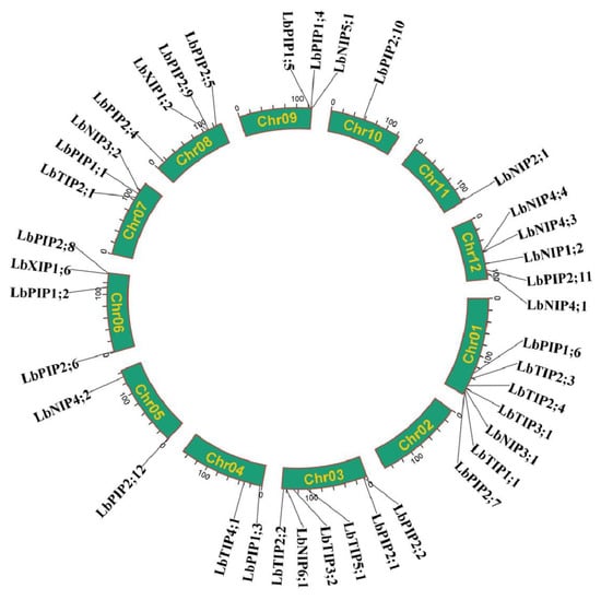 Figure 2. Chromosomal distribution of LbAQP genes.