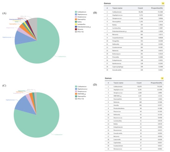 Quantitative data of L. plantarum ratio of skin of women in their (A,B) 20 s and (C,D) 50 s.