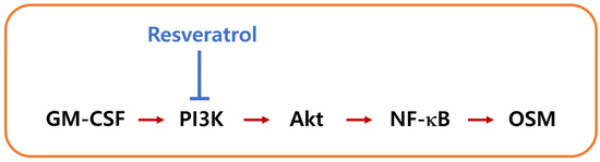 RES (C14H12O3) was purchased from Sigma-Aldrich Inc. (St. Louis, MO, USA). OSM antibodies and granulocyte-macrophage colony-stimulating factor (GM-CSF) were purchased from R&D Systems (Minneapolis, MN, USA). In Western blotting, phosphorylated (p)-PI3K p85 was purchased from Cell Signaling Technology (Danvers, MA, USA), and the others were purchased from Santa Cruz Biotechnology (Santa Cruz, CA, USA).