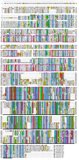 In living organisms, the PLA2 superfamily is divided into 16 groups [1], which were further classified into three types based on their properties: Ca2+-dependent cellular PLA2 (cPLA2), secretory PLA2 (sPLA2), and Ca2+-independent cellular PLA2 (iPLA2) [2]. Among PLA2, iPLA2s have only been found in a few insects. iPLA2s are Ca2+-independent enzymes that range in molecular masses from 28 kDa to 146 kDa [1,3]. iPLA2 plays a key role in membrane remodeling [4], AAs release [5], secretion, and other processes in mammals [6], etc. However, there is little research on iPLA2s in insects despite their relevance in various physiological processes. Insect iPLA2s, such as SeiPLA2A and SeiPLA2B, were first discovered in Spodoptera exigua, and have been demonstrated to play crucial physiological roles in insect immunity and larval growth [7,8]. IMD/Toll pathways have been shown to regulate these two iPLA2s, and immune challenges with different types of pathogens significantly increased their transcription [9]. Otherwise, PLA2-VIA mutation in Drosophila caused increased sensitivity to oxidative stress, progressive neurodegeneration, and a severely reduced lifespan [10]. These studies show that insect iPLA2 may play crucial biological roles in development and immunity.
