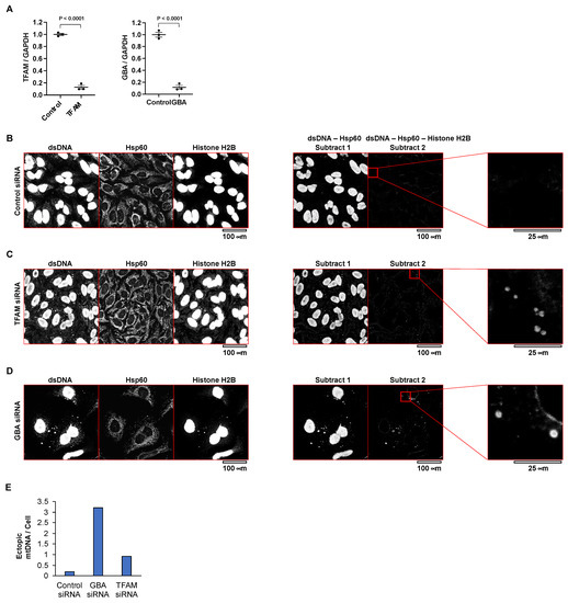 3.1. Decreased TFAM or GBA Induces an Increase in Ectopic Mitochondrial DNA