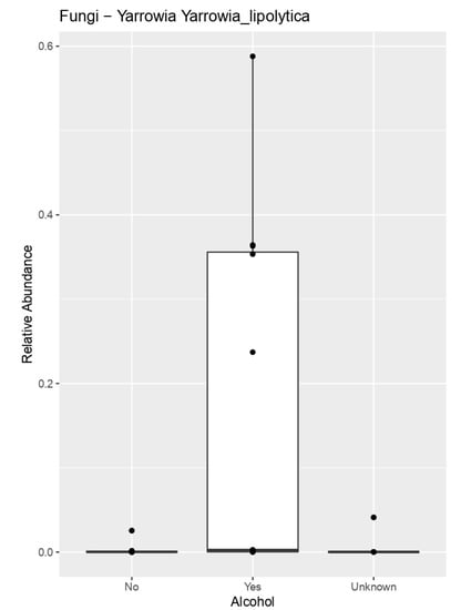 Patients who drink alcohol regularly (more than two times per week) had significantly more fungal species (Yarrowia lipolytica, p = 0.022) compared to those who denied alcohol intake.