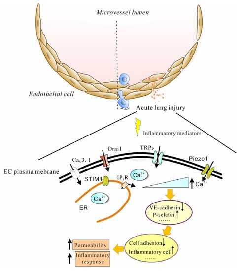 - Seeley, E.J.; Rosenberg, P.; Matthay, M.A. Calcium flux and endothelial dysfunction during acute lung injury: A STIMulating target for therapy. J. Clin. Investig. 2013, 123, 1015–1018. [Google Scholar] [CrossRef] [PubMed][Green Version]