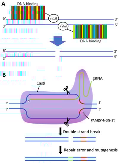 - Carroll, D. Genome engineering with zinc-finger nucleases. Genetics 2011, 188, 773–782. [Google Scholar] [CrossRef] [PubMed] [Green Version]