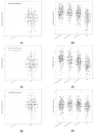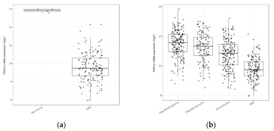 - Bowman, R.L.; Wang, Q.; Carro, A.; Verhaak, R.G.; Squatrito, M. GlioVis data portal for visualization and analysis of brain tumor expression datasets. Neuro Oncol. 2017, 19, 139–141. [Google Scholar] [CrossRef] [Green Version]