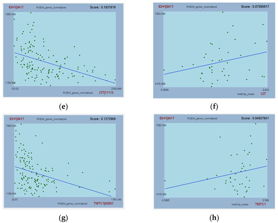 3.6. Further Analysis of Top-Hit Genes Associated with IDH1 as Potential Biomarkers