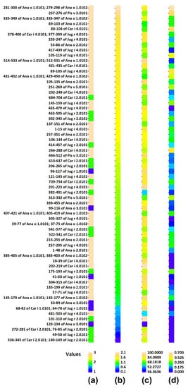 - Babicki, S.; Arndt, D.; Marcu, A.; Liang, Y.; Grant, J.R.; Maciejewski, A.; Wishart, D.S. Heatmapper: Web-enabled heat mapping for all. Nucleic Acids Res. 2016, 44, W147–W153. [Google Scholar] [CrossRef] [PubMed]