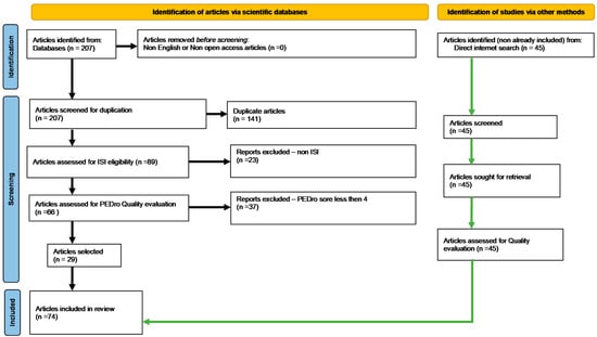 Database interrogation provided, initially, 207 articles. Applying the PRISMA selection filters and scoring resulted in 29 unique published qualified studies (Figure 1). The PRISMA-standardized methodology for conducting systematic reviews entails/requires specific steps and a high level of strictness. Such a systematic process is meant to help the authors construct an article structure skeleton giving a primary objective input about assembling the literature background to be approached, summarized, and synthesized. Moreover, the afferent contextual search (by keywords combination/syntaxes) we fulfilled may sometimes reduce the number of obtained articles. The 29 selected papers helped us complete our first task of constructing our article structure skeleton.