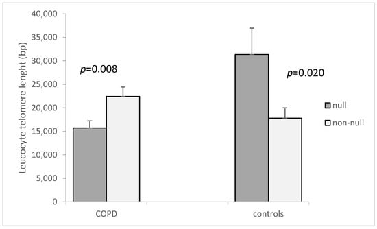APA StyleTacheva, T., Zienolddiny-Narui, S., Dimov, D., Vlaykova, D., Miteva, I., & Vlaykova, T. (2022). The Leucocyte Telomere Length, GSTM1 and GSTT1 Null Genotypes and the Risk of Chronic Obstructive Pulmonary Disease. Current Issues in Molecular Biology, 44(8), 3757-3769. https://doi.org/10.3390/cimb44080257