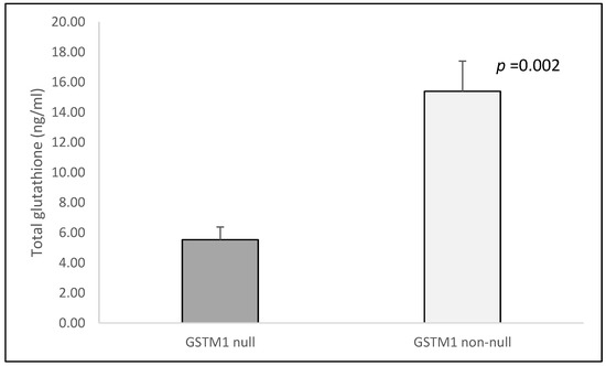 | GSTM1 null | 5.53 ± 0.85 | 13.39 ± 2.26 | 0.327 | 31,354 ± 5608.8 | 15,720 ± 1514.6 | 0.004 |