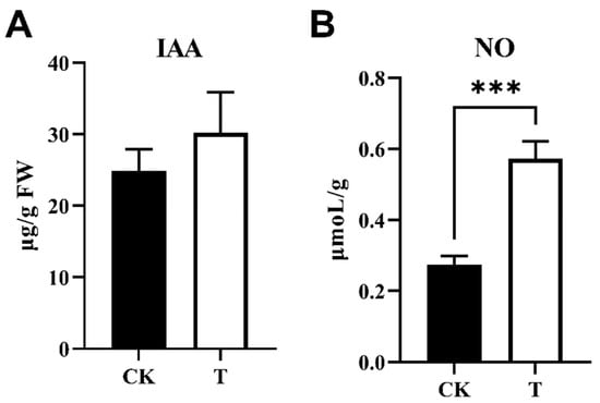 Chongqing Amita Biotechnology Company performed the rice IAA and NO assays in this study. Rice IAA content was measured by liquid chromatography, while nitric oxide content was measured using a modified Griess Reagent.