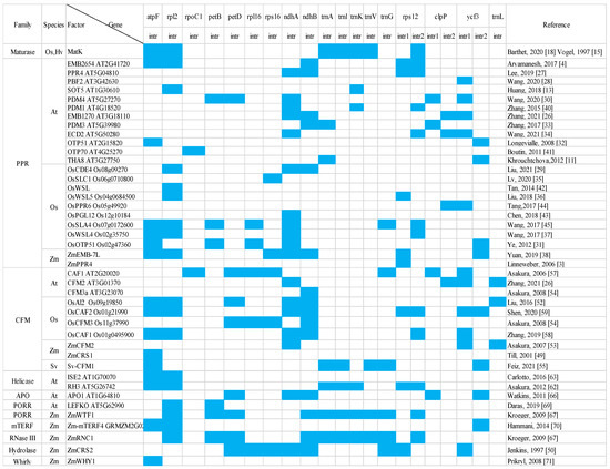 Zeng C, Jiao Q, Jia T, Hu X. Updated Progress on Group II Intron Splicing Factors in Plant Chloroplasts. Current Issues in Molecular Biology. 2022; 44(9):4229-4239. https://doi.org/10.3390/cimb44090290