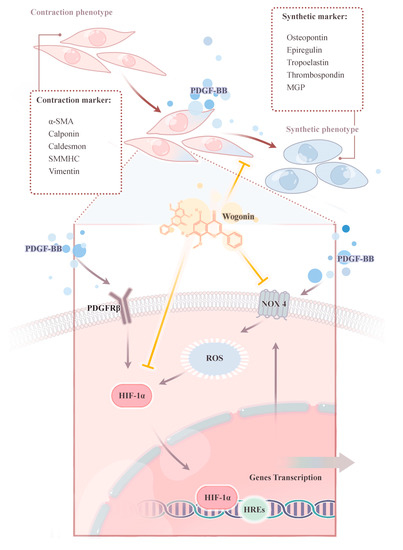 3.7. Effect of Wogonin on Phenotypic Switch of PASMCs