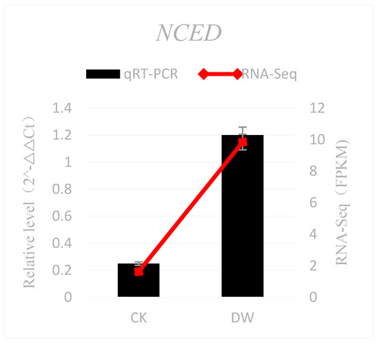 Validation of RNA-Seq results using qRT-PCR. CK is the control group and DW is the cold-treated group: (CK: 25 °C; DW: 1 °C).