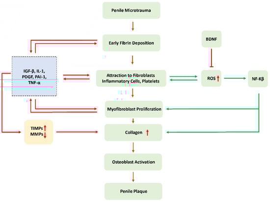ROS triggers the lipid peroxidation and synthesis of TGF-β1, two pro-fibrotic processes involved in atherosclerosis, arteriosclerosis, liver fibrosis, and other types of generalized inflammation and fibrosis. Therefore, we hypothesize that BDNF indirectly regulates the fibrotic process of PD plaque.