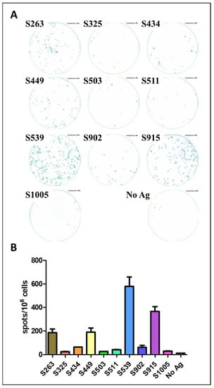 The following supporting information can be downloaded at https://www.mdpi.com/article/10.3390/cimb45100502/s1, Figure S1: ELISpot assay using stabilized S; Figure S2: Epitope scanning using SARS-CoV-2 Spike overlapping peptide library.