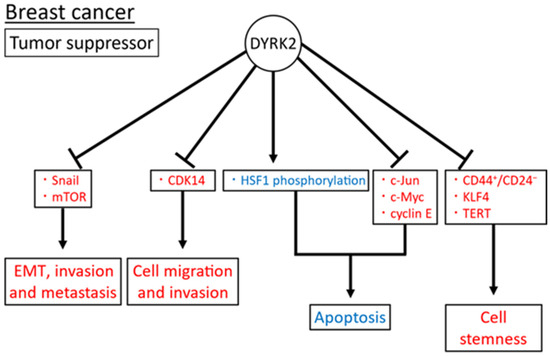 DYRK2 has been reported to function as both a tumor suppressor and an oncogene in breast cancer.