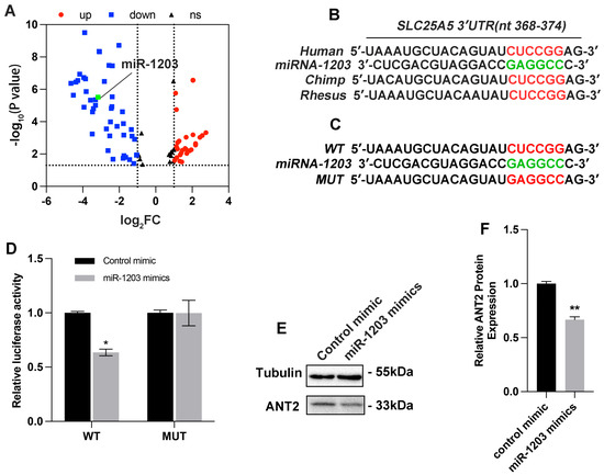 3.3. ANT2 Was Targeted and Regulated by miR-1203 in Human AC16 Cardiocytes