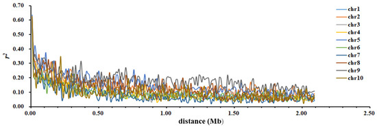 | Chr. | LD Decay (r2 < 0.2) | LD Decay (r2 < 0.1) | Min | Max | Mean | Median | SD | Kurtosis | Skewness |