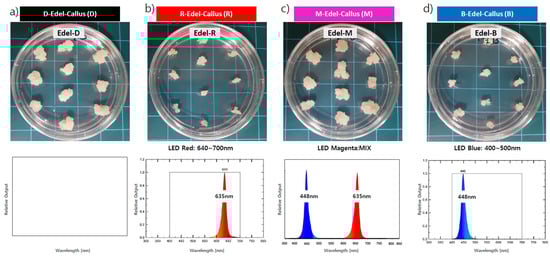 23]. However, excluding a few cases, there are not many instances of cultivating plant callus using LED lighting [