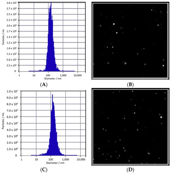 We separated EVs from Edelweiss callus liquid suspension culture under both darkness (D) and M-LED conditions by passing them through 100-mesh and 300-mesh filters. After centrifugation at 3000 to 4000× g, only the supernatant was collected to remove cell residues. Subsequent centrifugation at 100,000 to 150,000× g for 2 h allowed EVs to settle, forming a pellet layer. Isolated EVs were reconstituted in sterile water and sterilized through a 0.22 µm filter. To conclude, we characterized the EVs derived from Edelweiss callus using NTA equipment (ZetaView, Particle Metrix, Inning am Ammersee, Germany) to validate their size and concentration based on the respective culture treatment conditions. This comprehensive approach provides insights into the potential impact of M-LED on EV production, offering valuable information for advancing our understanding of intercellular communication mechanisms.
