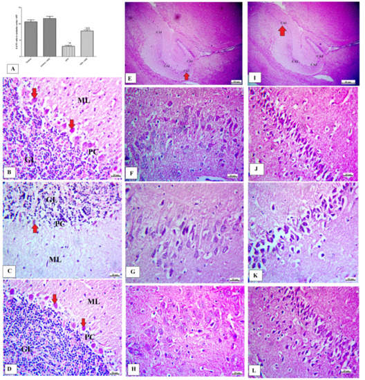 2.7. Assay of Oxidative Stress Markers (MDA, Catalase Activity, and Total Antioxidants) in Brain Tissues
