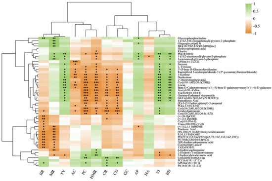 Correlation analysis of rice quality traits and DMs. * p < 0.05, ** p < 0.01, *** p < 0.01.