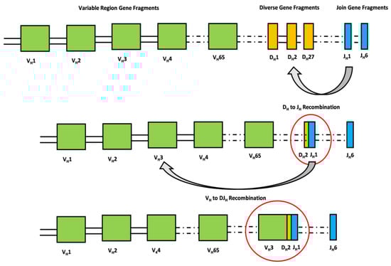 - Roth, D.B. V(D)J Recombination: Mechanism, Errors, and Fidelity. Microbiol. Spectr. 2014, 2, 313–324. [Google Scholar]