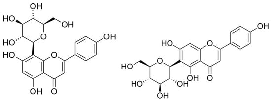 Chemical structure of vitexin (left) and isovitexin (right).
