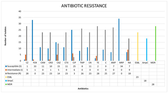 | Isolation of Samples | CXM (mm) | CRO (mm) | FOX (mm) | CZ (mm) | CTX (mm) | CAZ (mm) | TM (mm) | TE (mm) | C (mm) | CN (mm) | NA (mm) | CIP (mm) | AMP (mm) | MRP (mm) | Resistance Number |