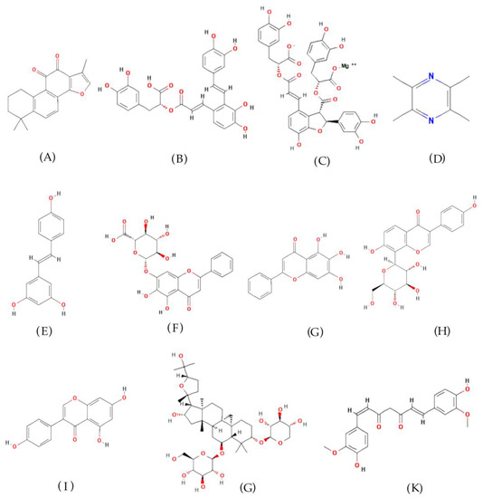 - Guo, R.; Li, L.; Su, J.; Li, S.; Duncan, S.E.; Liu, Z.; Fan, G. Pharmacological Activity and Mechanism of Tanshinone IIA in Related Diseases. Drug Des. Devel. Ther. 2020, 14, 4735–4748. [Google Scholar] [CrossRef]