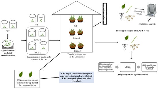 An illustration of the summarized experimental procedure used to analyze potato RNAi-plants.